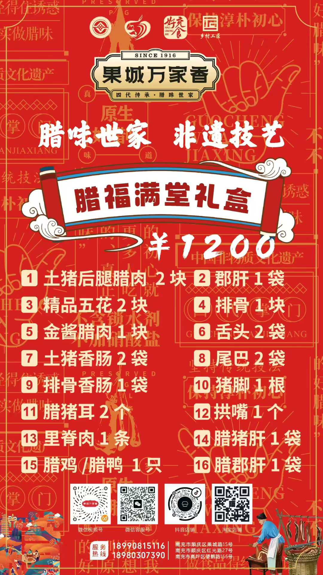 為滿足消費者多樣化的節(jié)日需求,萬家香特別推出了臘福五福、臘肉六順、臘福八吉、臘福十全、臘福滿堂等多款禮盒,從380元到1200元不等,涵蓋臘肉、香腸、拱嘴、豬耳等十余種臘味單品,無論是家庭團聚還是走親訪友,都能找到稱心之選。